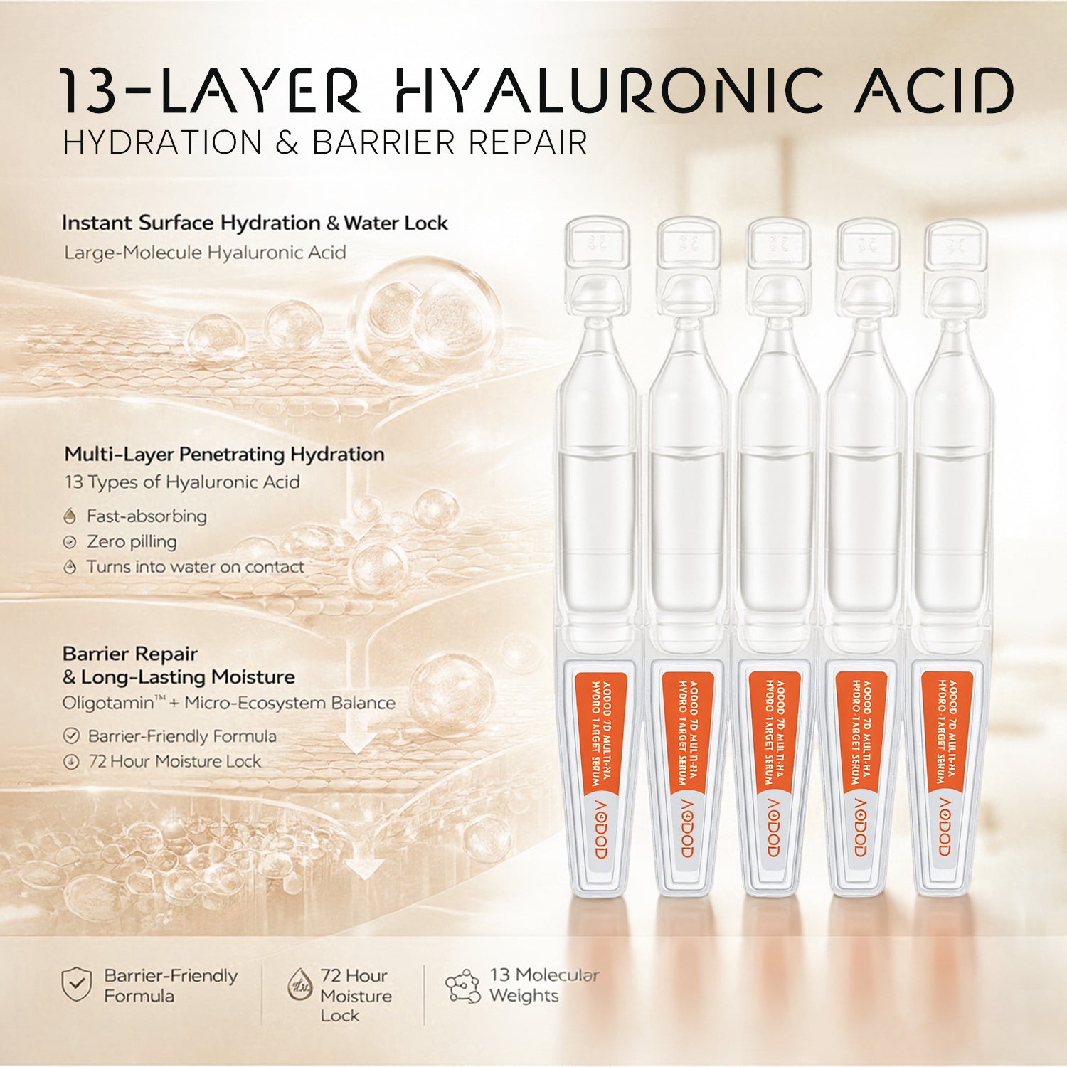 AODOD Multi-Weight Hyaluronic Acid Hydrating Serum (Single-Use Ampoule) All-Day Hydration Barrier Care